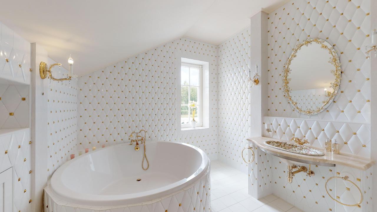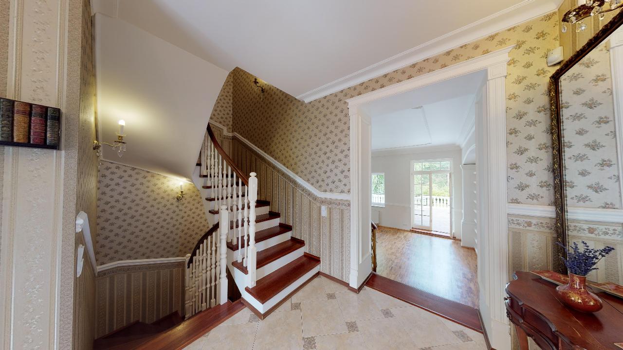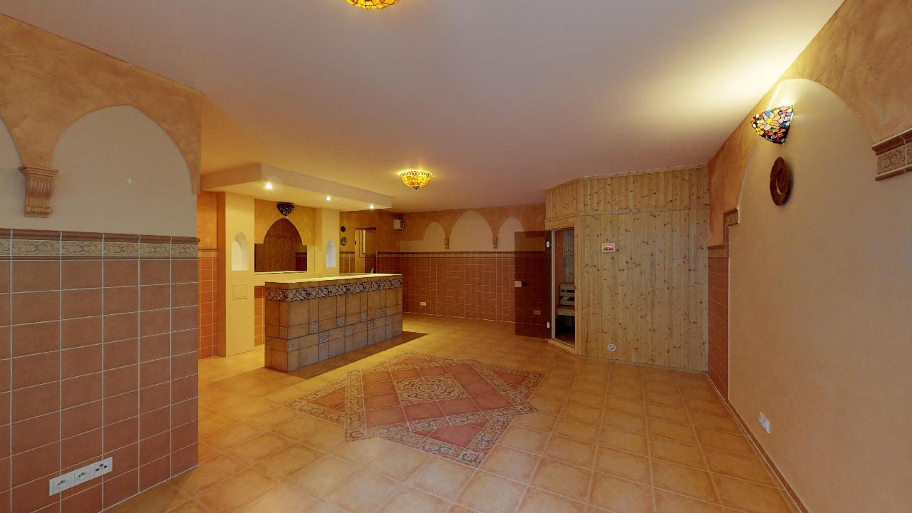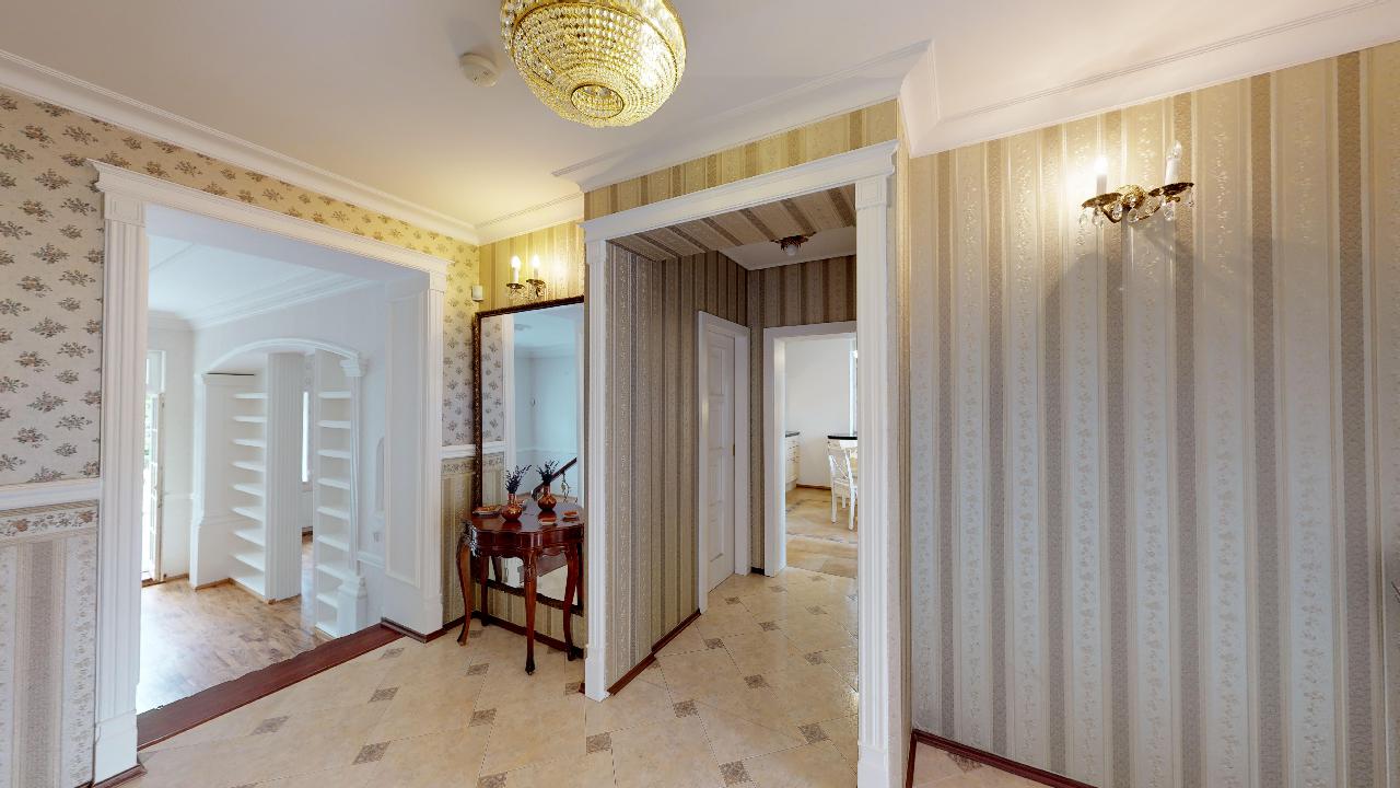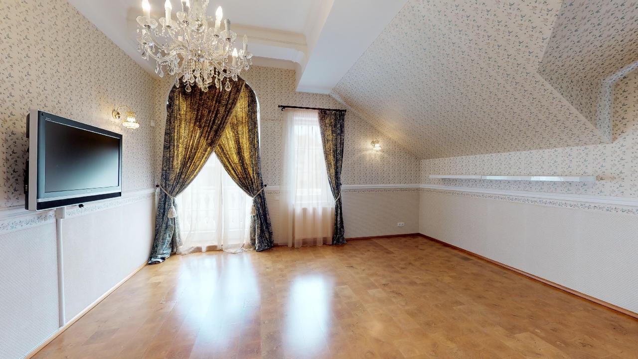 Dům je postavený v anglickém stylu. Pyšní se krbem, terasou, třemi ložnicemi, dvěmi luxusními koupelnami, čtyřmi toaletami, saunou, relaxační místností, fitness místností, pracovnou atd. Podlahy a veškerý nábytek jsou z kvalitních materiálů, stejně tak i bohatě zdobené koupelny se zlatými kohoutky. Prostorná garáž nabízí místo pro dvě osobní auta, kola a motorku.