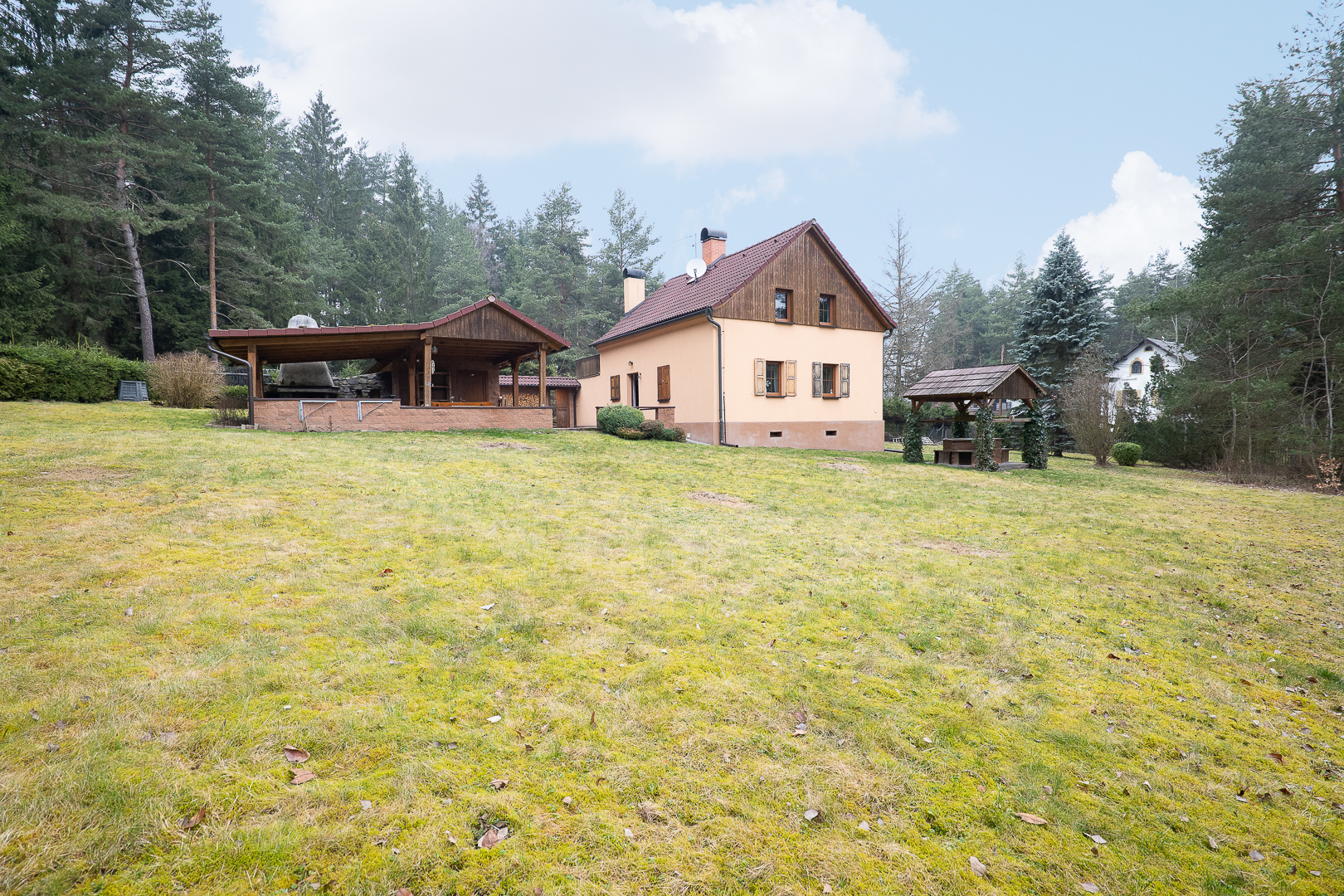 Stylový dům v přírodě v blízkosti lesa a rybníka. Jedná se o podsklepený patrový dům 5+kk s terasou a krásným krytým posezením pro grilování u domu. Je zde dostatek úložného prostoru, dílna a rozlehlá udržovaná zahrada se vstupem do lesa.